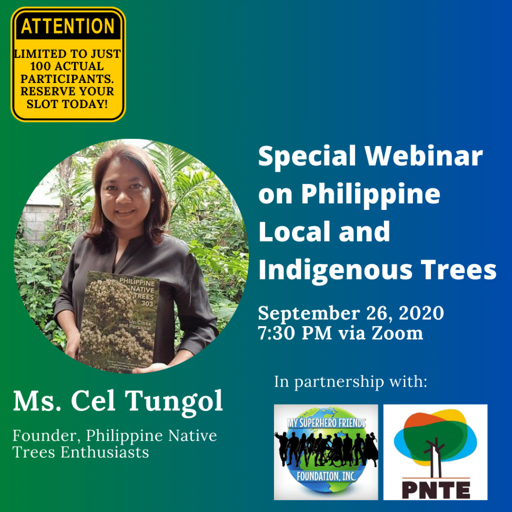 Ms. Cel Tungol, founder of the Philippine Native Tree Enthusiasts is going to hold a FREE webinar in partnership with your My Superhero Friends Foundation, Inc!